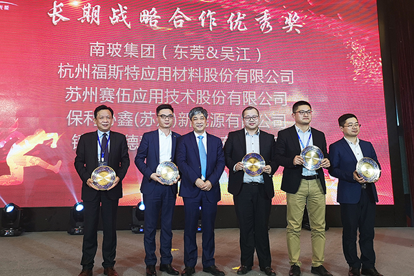 本屆供應商大會中,福斯特榮獲2018年度天合光能“長期戰略合作優秀獎”。公司始終堅持“高效、卓越、客戶第一”的服務宗旨,多年來與天合光能一起攜手同行,共同發展。福斯特為客戶提供高品質的光伏封裝材料并得到客戶單位的高度信任和認可。