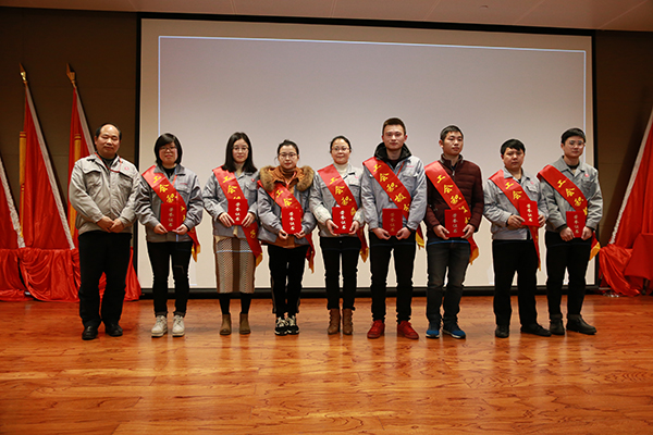 會中,公司對榮獲2018年度先進集體(1名)、先進班組(3名)、5S 優勝單位(1名)、“安康杯”優勝單位(3名)、安全優秀班組(10名)共18個部門單位和班組集體進行了表彰。同時,公司對2018年度優秀員工(61名)、員工新秀(6名)、愛廠敬業五年獎(43名)、愛廠敬業十年獎(42名)、愛廠敬業十五年獎(1名)、工會積極分子(40名)、黨員積極分子(3名),共196名(次)員工進行個人榮譽表彰。榮獲優秀員工、員工新秀、愛廠敬業獎代表分別在會中發言。